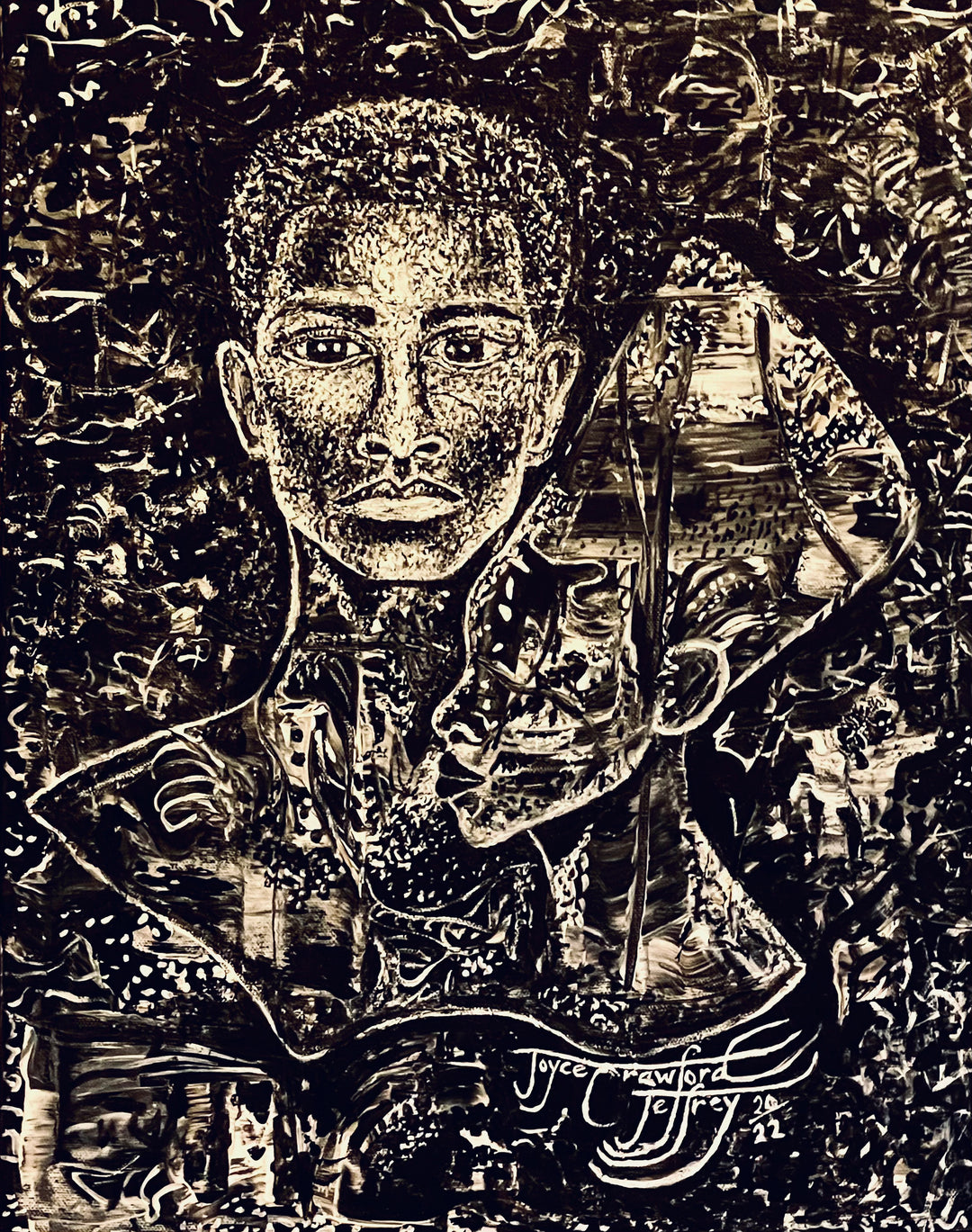 Born in Okmulgee, Oklahoma in 1953, Joyce moved to Detroit in 1986 for her second stint in the motor city, where a consistent focus on her art wouldn’t start until 30 years later. Joyce, who was a homemaker and stay-a-home mother for many years, drew portraits occasionally as a hobbyist. Art, however, always called and Joyce answered.